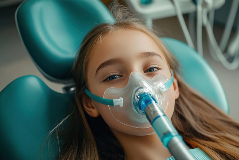 Газ поступает в организм только через дыхательные пути, не требует венозного доступа и не выключает сознание. Он снижает тревогу, усиливает действие местного анестетика и притупляет восприятие неприятных ощущений, но ребёнок слышит речь и может выполнять простые просьбы.