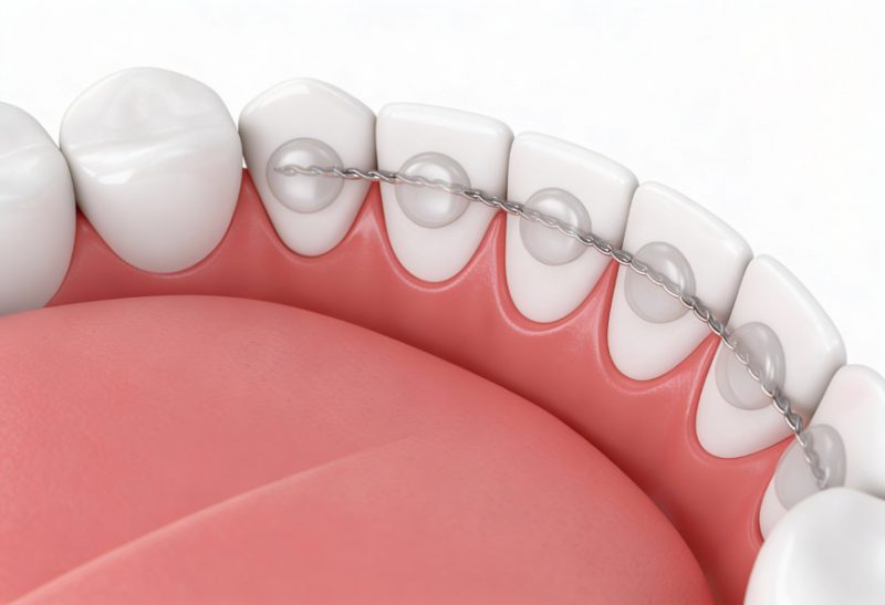 Несъёмные ретейнеры на внутренней стороне зубов