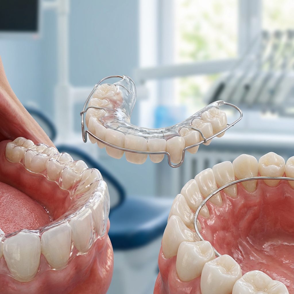 Ретейнер действует как внешняя опора и не даёт зубам сдвигаться, пока кость и связки не укрепятся в новом положении. Это снижает нагрузку на ткани и делает результат более предсказуемым.
